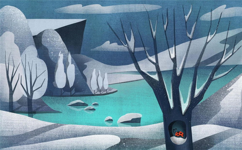 这12张壁纸按照季节的顺序,分别描绘了兔子、瓢虫和变色龙在不同季节下的不同样子,配合优美的风景美术,看起来童趣满满,用来做主题也是相当适合了。