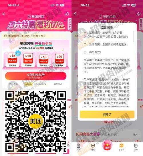 【美团抽30万份30亓闪购免单】美团APP扫码->今天11/12/14/16点会放水,抽啤酒/水果/闪购免单神券 链接: https://tb3.cn/AeAJvc