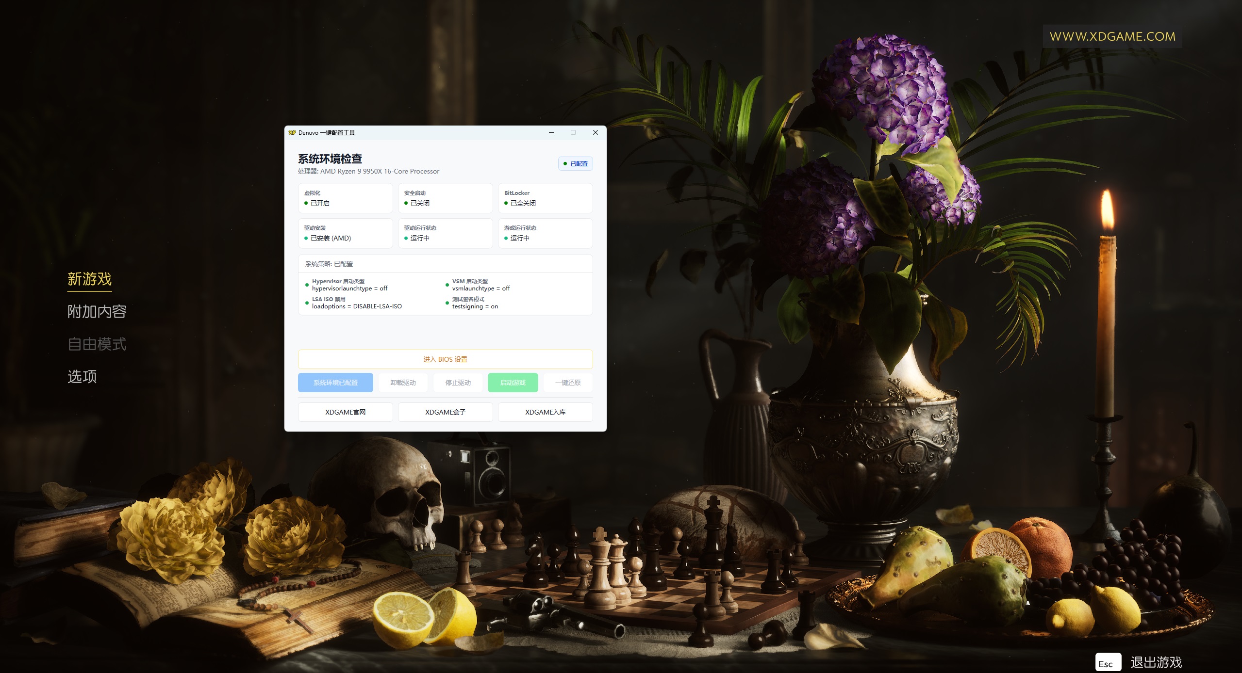 回到西西里的暗黑之源,见证黑手党的诞生。在《黑手党:故乡》中,你将化身恩佐·法瓦拉,踏入1900年代那个充满血与荣耀的残酷世界。为了生存,为了向家族证明自己的价值,你必须在这片被荣誉与背叛浸染的土地上,杀出一条属于你的道路。一部沉浸式第三人称动作冒险,揭开有组织犯罪最原始的篇章。 虚拟工具还在待成熟阶段(对老Intel U兼容不够,但未必不能玩),对AMD CPU支持很好。很多玩家实测,虚拟机只是用来绕D密。所以玩起来,和正常版基本没差,几乎没有性能损耗。 没动手能力嫌麻烦不建议搞(其实也没想象那么麻烦),不过你真的能搞懂,D加密游戏有相关补丁全都是可以玩的。 Q1:会不会搞坏电脑 A:正常来说不会,但是不保证所有人硬件都兼容,需自己考虑清楚在下!老旧机器不建议!英特尔14代或AMD9系基本99%大概率都能玩! Q2:游戏会不会很卡,容易闪退 A:虚拟机仅用来绕D密,几乎不占用性能。这些大作要求配置较高,有些优化也一般,(能玩情况下)如果闪退,你玩正版极大概率也会闪退 Q3:有些游戏IntelCPU玩不了吗? A:最近更新的游戏补丁,intel都能玩,之前游戏的补丁作者也一直更新测试中,这是虚拟机正在迈向成熟阶段。同个补丁同个游戏,也有可能你的intel能玩,别人的intel不能玩 打开游戏之前的环境准备(所有人都必须做 只需要做一次 后续畅玩所有D加密游戏) 第一步:bios设置 1. 开启虚拟化: 找到 SVM Mode (AMD) 或 Intel Virtualization Technology (Intel),设置为 Enabled。 2.关闭安全启动: 找到 Secure Boot,设置为 Disabled。 注:每个主板具体设置不同 不知道设置可以百度查询或问豆包自己主板型号的相关设置 第二步:关闭BitLocker 1.打开控制面板 右上角查看方式切换为小图标 找到“Bitlocker驱动器加密” 2.把所有驱动器都设置为关闭,有多少个盘全部都得关! 以上都完成后:打开Denuvo.exe 检查第一排设置是否都已经完成 都显示小绿点代表以上步骤完成 我们点击软件的一键配置环境,然后重启电脑。 重启电脑后继续打开Denuvo.exe点击 安装驱动 → 启动驱动 → 启动游戏 → 开始玩耍 注意:每个游戏驱动不同,比如你玩了剑星,现在要来玩生化9,在剑星目录打开Denuvo.exe卸载驱动,在来安装其他游戏的驱动! Build.20951841|容量45.7GB|官方简体中文|支持键盘.鼠标.手柄游戏介绍