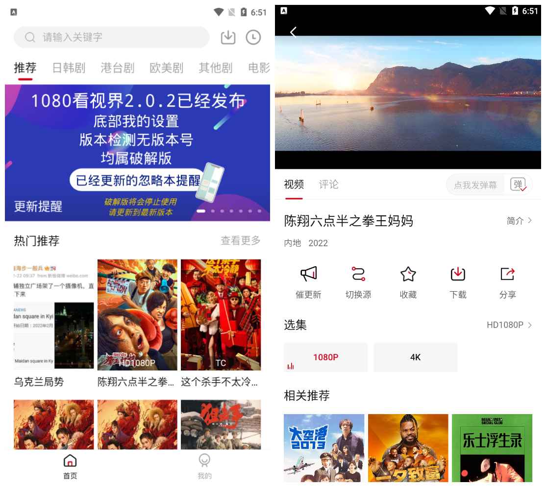 1080看视界是一款为大家带来高清免费影视资源的视频播放软件,用户在这里可以观看到各种类型的电影电视剧,画质几乎都是超高清起步的,没有模糊的影视频播放画面,平台每天都会上新一些人气热播影视剧,让用户随时都可以追热门电视剧。