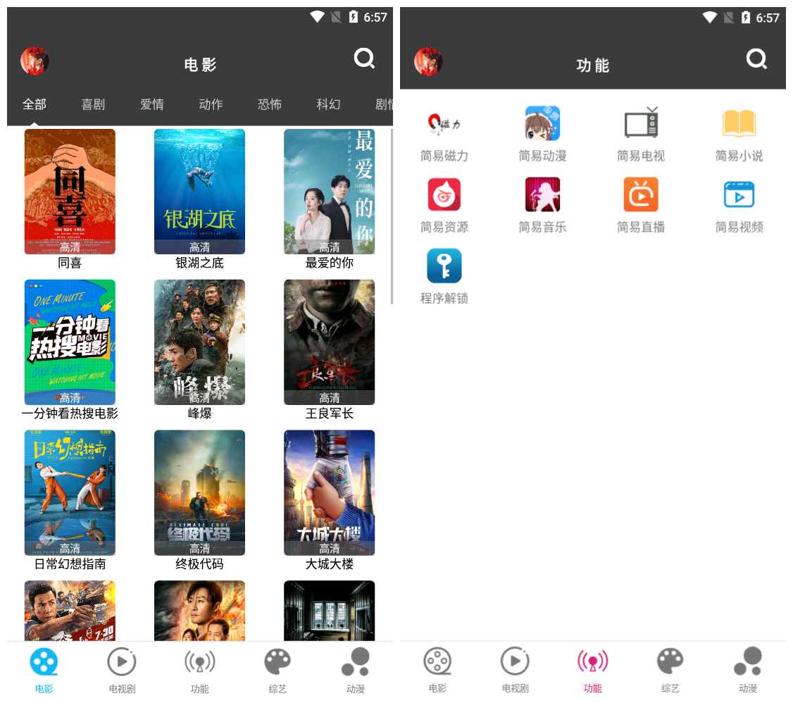 简易视频APP是一款聚合全网影视观影神器,包含了海量的影视资源,大家可以即点即播,播放超清流畅不卡顿,随时随地追剧不等待,让你免费享受最流畅的观影体验,快来下载体验吧!