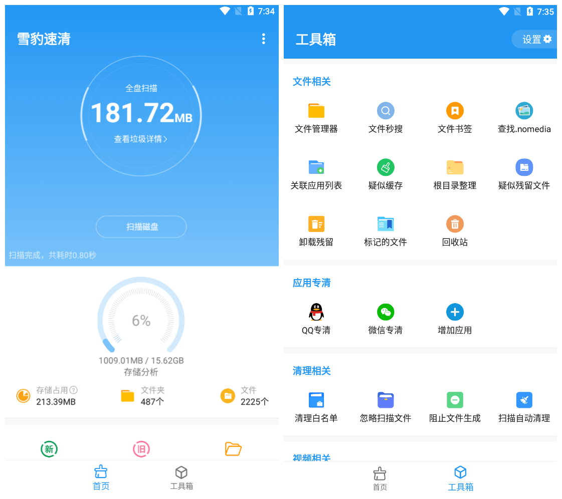 本文是一款安卓雪豹速清目前评分很高的一款垃圾清理工具,最特色的是自动扫全盘;扫描速度也很快,智能文件分类,一键清理垃圾,支持目录访问、文件复制、缓存垃圾扫描、文件管理等操作。