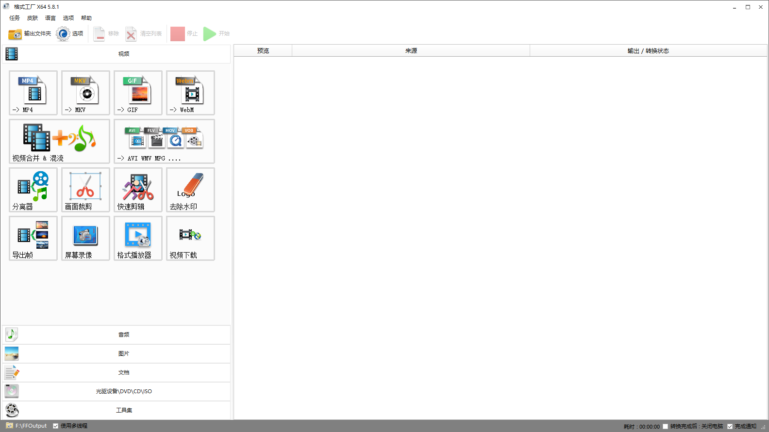 1 支持几乎所有类型多媒体格式到常用的几种格式