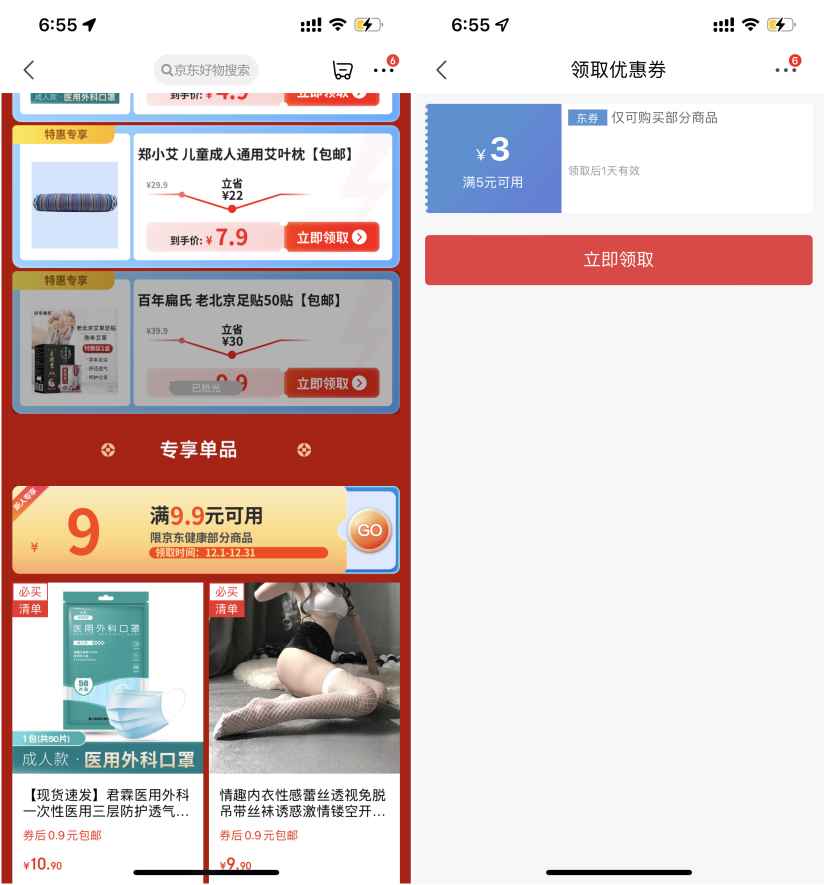 本文在京东APP领取一张满9.9减9和满5减3元优惠券,两张券叠加使用;购买50只一次性口罩,自己实付0元即可,有需要的朋友可以购买。