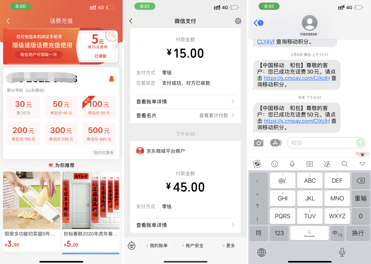 本次为大家分享的是京东极速版领取5元话费券 亲测45充50