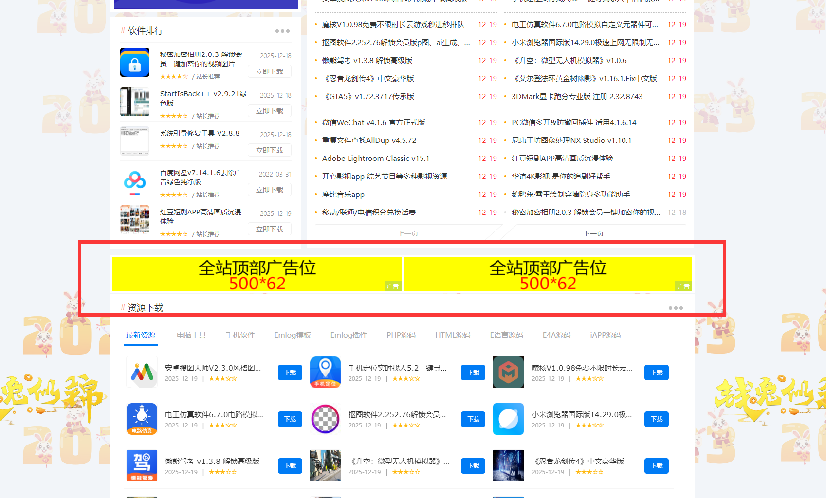 - 全站:置顶大横幅广告位,300元/月 | 点击预览