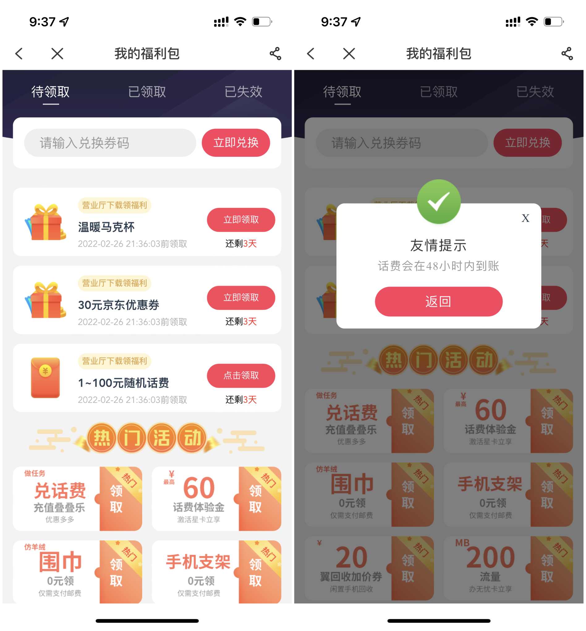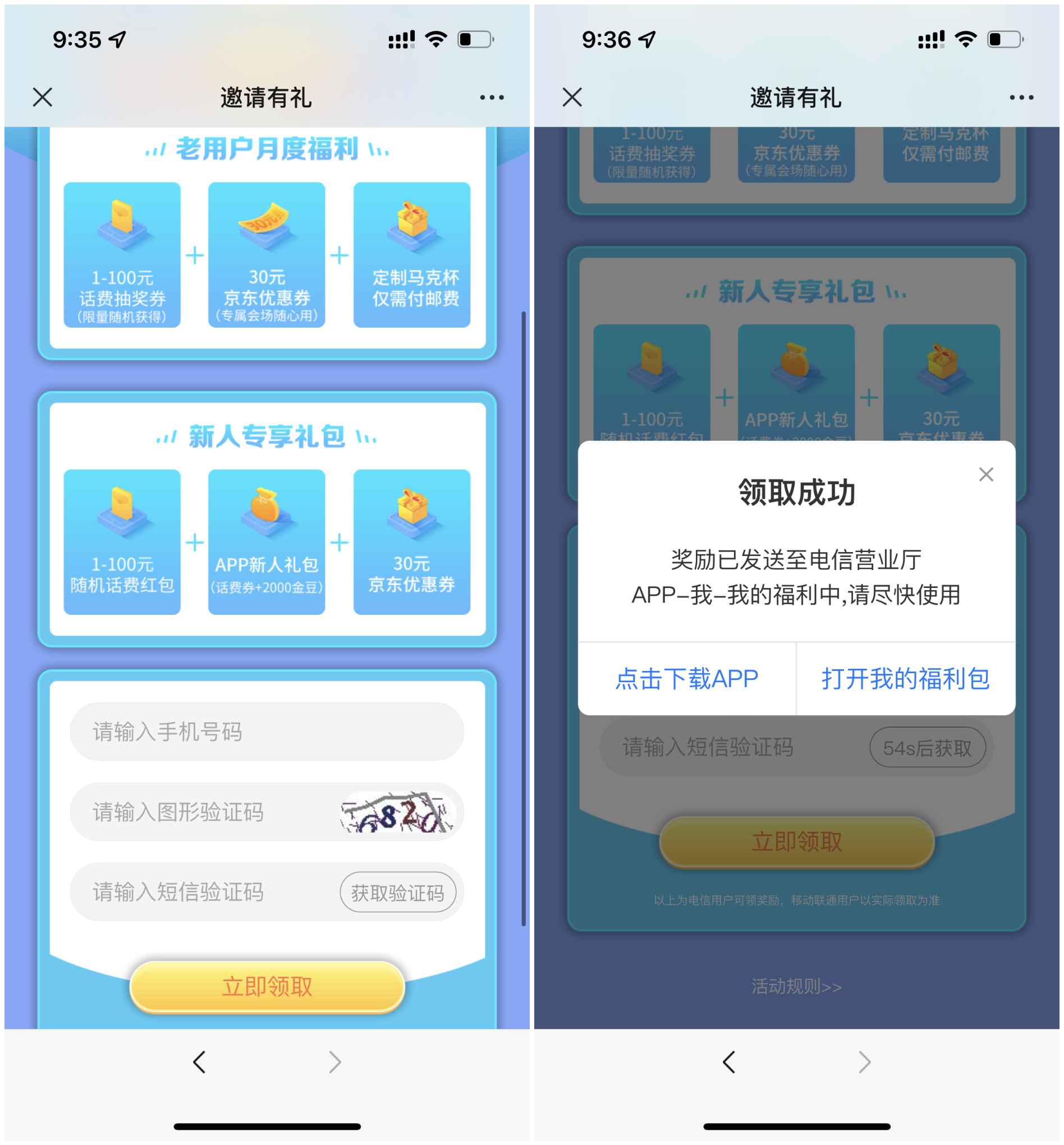 本文是每个月都可以参与一次,进入活动输入手机号码验证领取专享礼包;再去电信营业厅APP--我--我的福利中心拆礼包,随机获得1-100元话费;小编亲测1元话费,话费是秒到账,大家可以参与一下。提醒:每个月都可以参与一次。