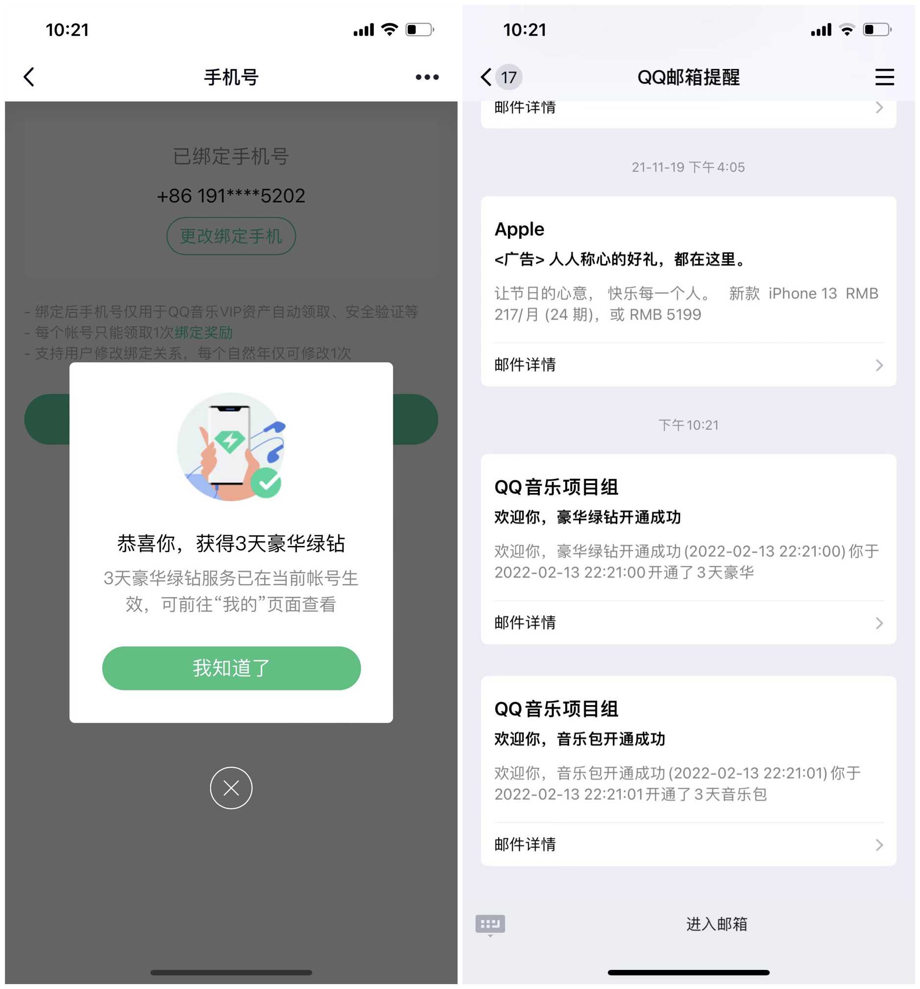 本文是新一期活动,上一期的是绑定新增7天豪华绿钻,现在缩水变成3天了;如果没绑定过的朋友可以参与一下,绑定手机号码即可领取3天豪华绿钻;每个账号只能领取1次绑定奖励,手机号码绑定60天后才可以换绑。